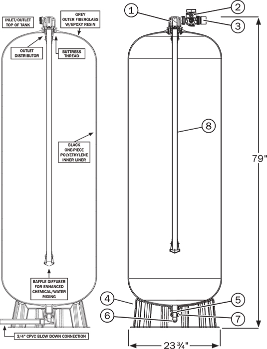 Fiberglass/composite pressure vessels are rated for an internal negative pressure of 5-inches Hg (17 Pa) vacuum below atmospheric. If negative pressure could ever exceed 5-inches Hg (17 Pa), an adequate vacuum breaker must be installed between the pressure vessel inlet and any valves (see illustration right). For enclosed tank applications, the vacuum breaker should be installed at the highest location in the system plumbing.