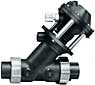 The K52 Series is designed to control the flow of de-ionized water, corrosive fluids, caustics, and acids. Line fluid never contacts a corrodible surface. The body and cap are molded of black glass reinforced Noryl thermoplastic resin. The diaphragm is Buna-N and seals are ethylene propylene. Valves are available in 4 body sizes: 1/2-inch, 1-inch, 1-1/2-inch, and 2-1/2-inch. Valves are available with a variety of end connections. Maximum working pressure is 125 psi (8.6 bar), and maximum temperature is 140°F (60°C). |