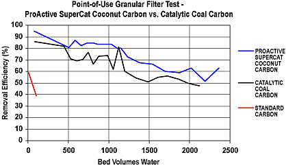 catalytic carbon. Standard 9 x 2.5 inch water filter cartridges containing granular carbon were tested at 1 gpm
