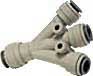| John Guest fittings can be quickly coupled together to form integral new fittings. |